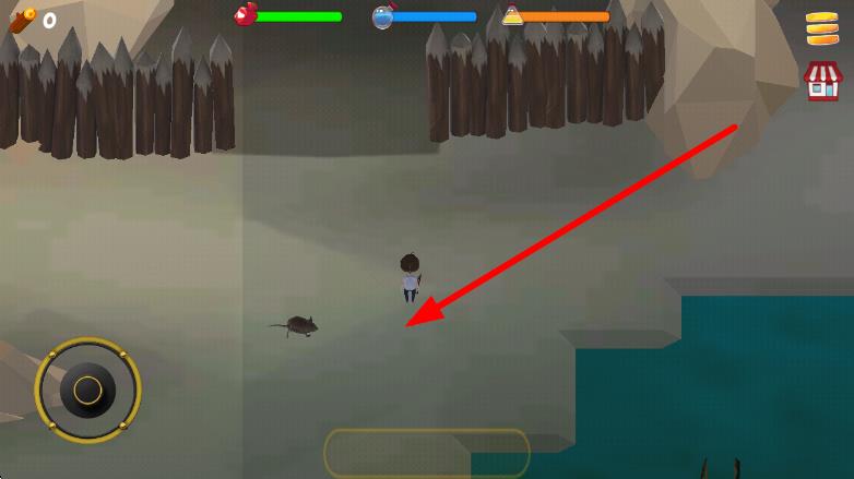 2、进入游戏后,操控角色移动,避开老鼠等危险,探索区域,注意左上角生命、体力等数值。