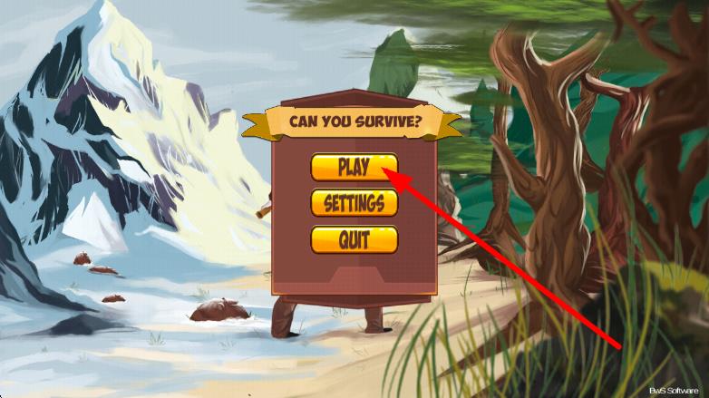 1、在游戏初始界面,点击PLAY按钮,进入生存挑战,在雪山森林场景开启冒险,努力存活下去。
