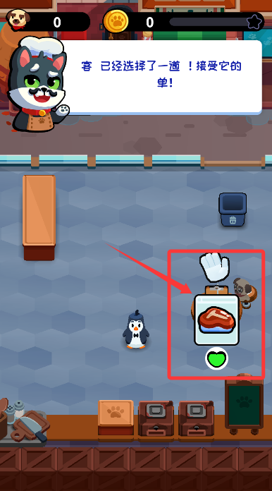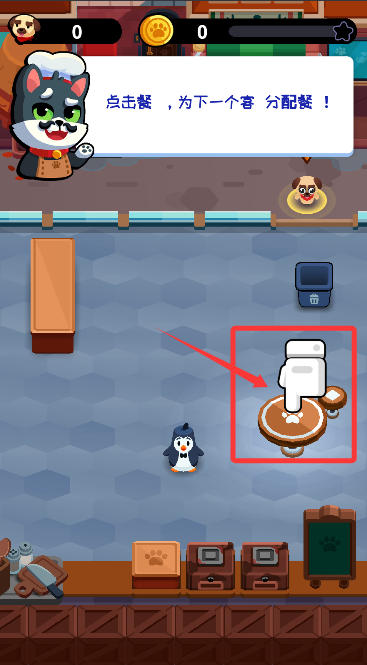 1、来到餐厅主场景,根据引导点击空闲餐桌,及时为动物顾客安排就座。