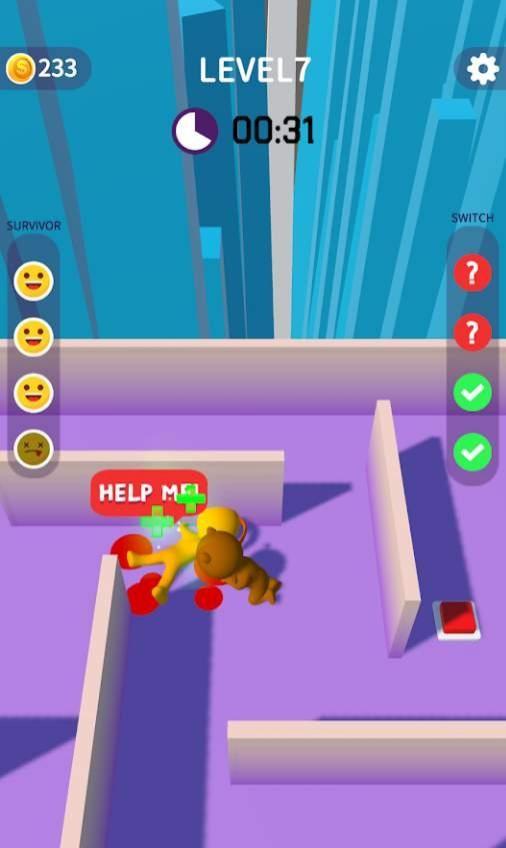 3、新关卡按箭头找绿色道具,靠近拾取强化角色,同时留意时间,利用道具快速突破障碍逃生。