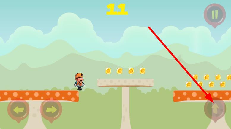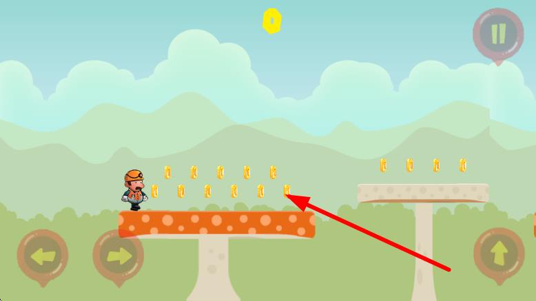 3、面对平台间隙,当角色靠近时,点击右下角向上的箭头键,触发跳跃,跨越到对面平台,继续收集金币,推进冒险。