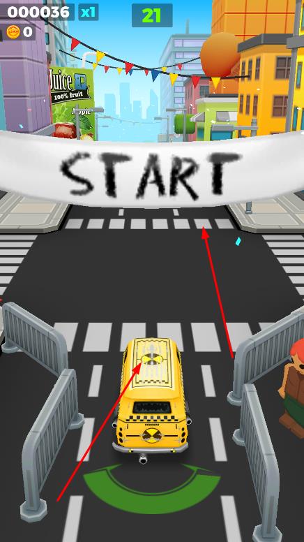 1、进入界面,点击START按钮,进入场景中,通过手指滑动屏幕,控制汽车的移动方向。