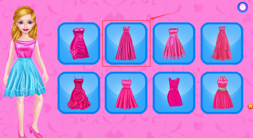 3、选择红框箭头指向的红色修身礼服,为角色换装。