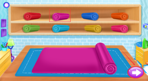 4、点击红框紫色螺旋毛巾,完成更衣室物品整理任务。