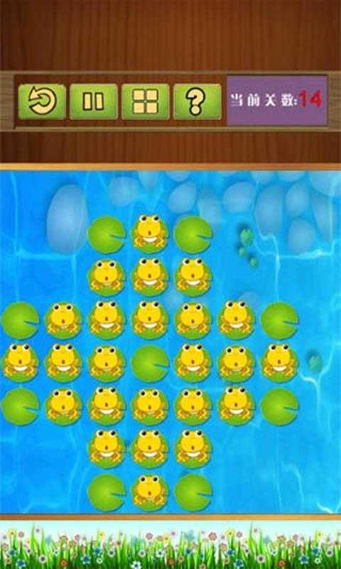 1、点击青蛙跳棋主界面的继续游戏按钮,进入关卡挑战,依照跳棋规则开启青蛙跳跃的解谜之旅。