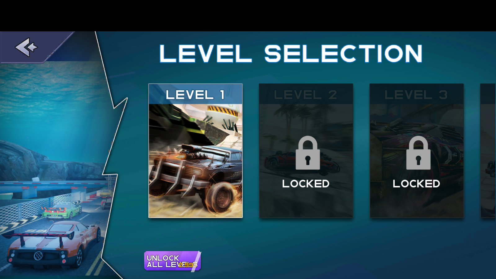 2、赛车性能升级:完成任务获得奖励,用于提升赛车速度、防御等性能,解锁更强武器(如机枪、导弹),让赛车在竞速和战斗中更具竞争力。