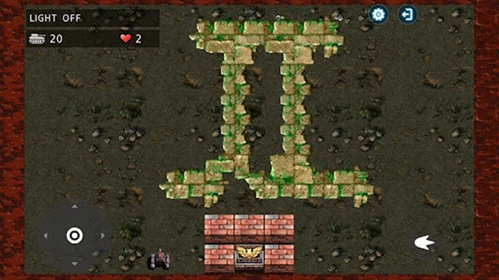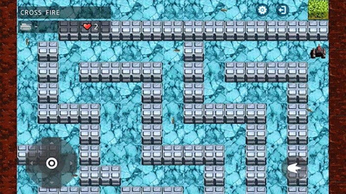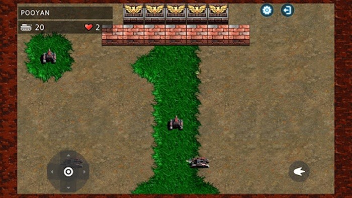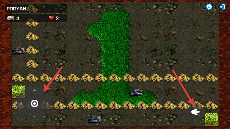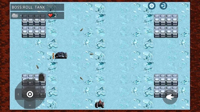 1、虚拟摇杆操控坦克移动,点击右侧按钮发射对应类型子弹。
