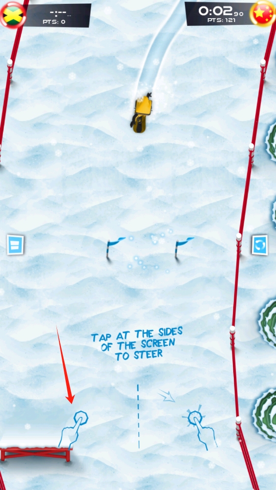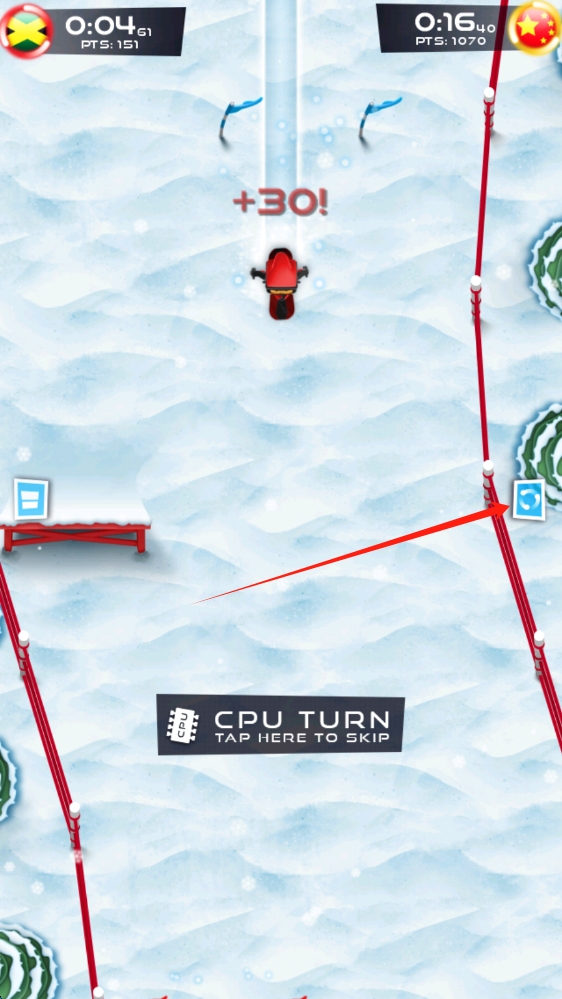 2、比赛时,点击屏幕两侧,控制雪地载具方向,在赛道灵活穿梭,争取领先,点击向左滑。