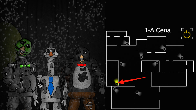 2、电脑显示地图1-ACena,根据箭头指引,在建筑布局中探索,躲避机械鸭子等怪物。