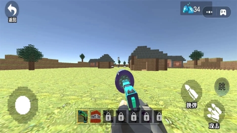 2、持续在草地场景推进,利用换弹、跳跃操作,应对不同敌人,收集资源,需要时刻注意敌人朝你走来。