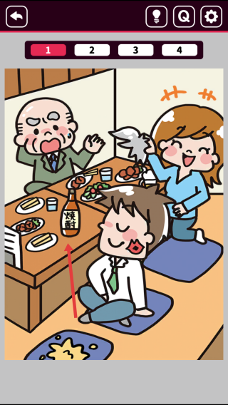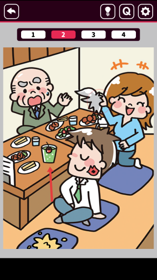 3、再次观看酒杯,就因为你的点击变成果汁了,继续选择不合理的地方,找出所有不合理,完成关卡。
