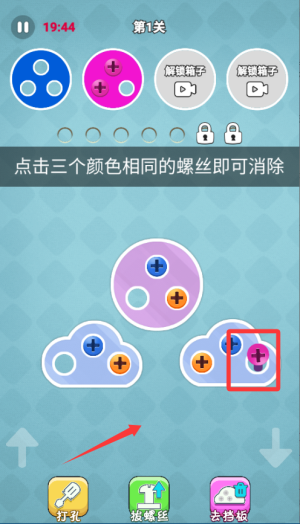 3、画风清新界面直观,用色彩区分螺丝类型与旋转方向,降低学习成本,让注意力集中于策略制定。