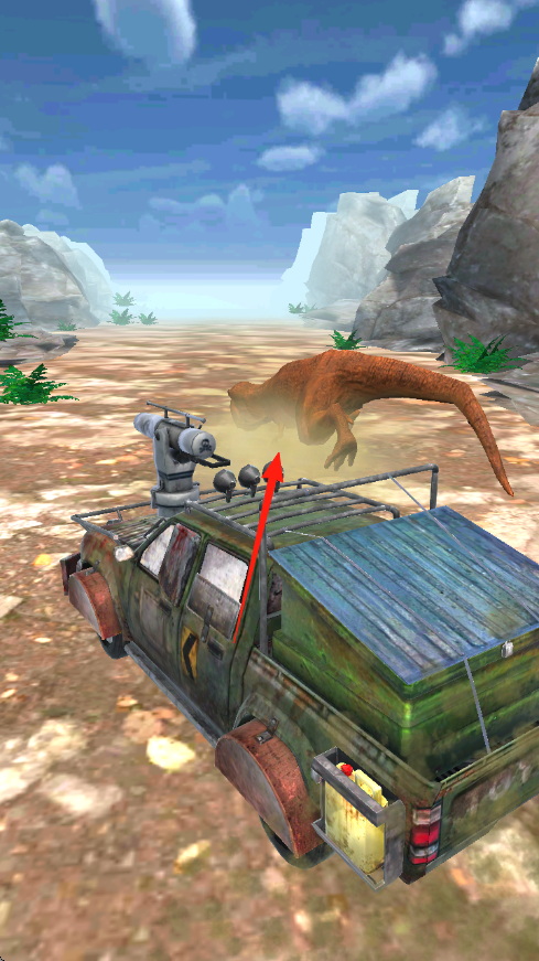 3、驾驶改装车,持续追击恐龙,利用武器攻击,完成狩猎或生存目标,推进关卡。