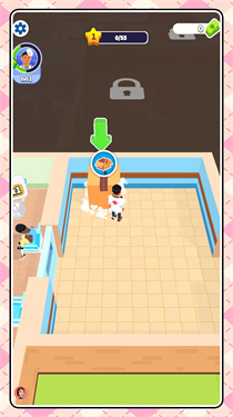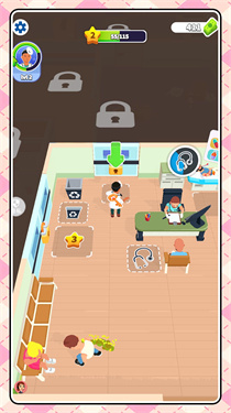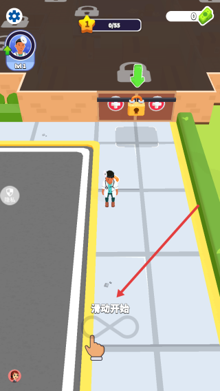 1、在游戏初始界面,滑动滑动开始标识,操控角色进入医院场景,开启模拟经营+闯关玩法。