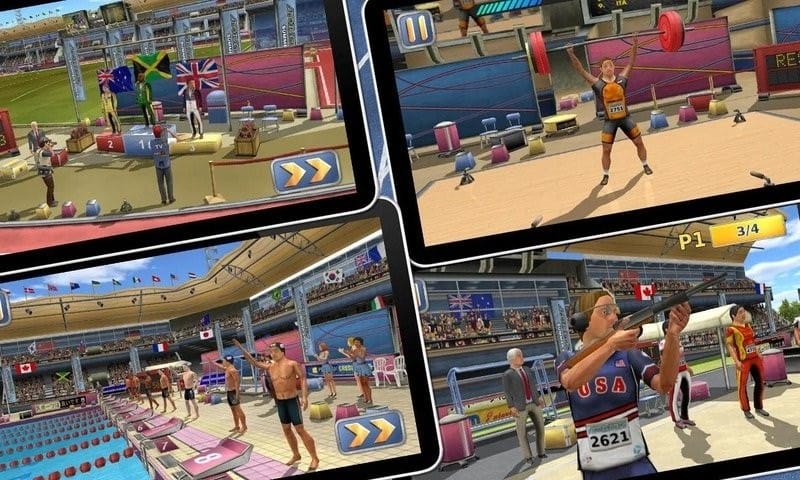 1、实时竞技对抗:支持多人联机比拼,玩家可与全球对手实时较量,在排行榜上争夺名次,体验真实的奥运竞技竞争氛围。