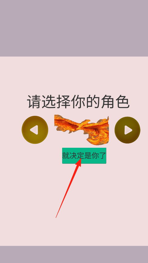 2、到角色选择页,选好带火焰特效的角色,点就决定是你了,确定角色后,进入战斗,用这个角色的技能,和对手一决高下,感受专属角色的战斗风格。