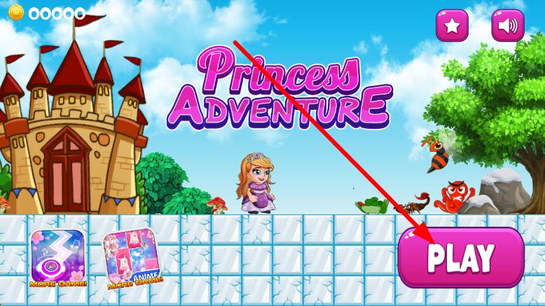 1、进入游戏主界面,点击粉色PLAY的按钮,操控公主开启冒险,在城堡周边场景收集金币、应对敌人。