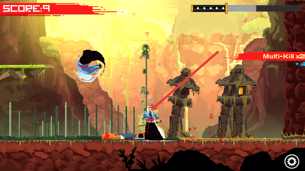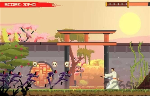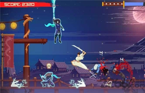 1、像素风格横版动作:采用像素风格呈现横版动作场景,画面复古且细节丰富,武士的动作与敌人的形象都极具特色,带来独特的视觉体验。