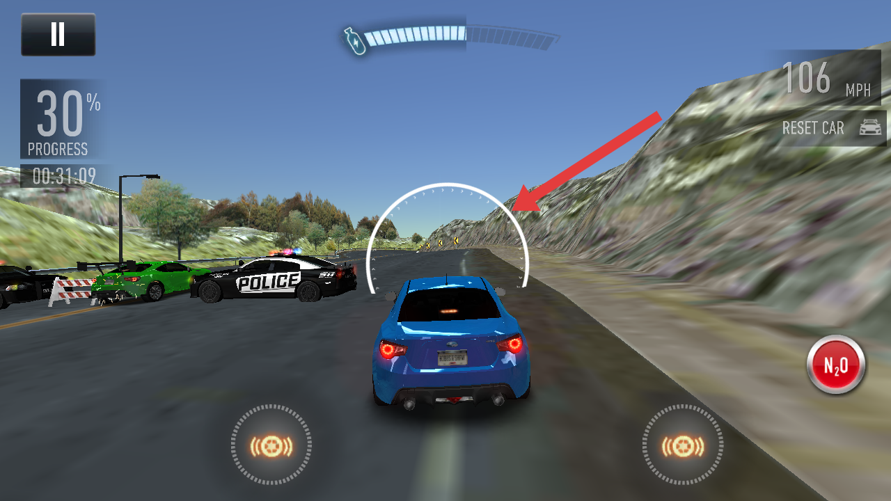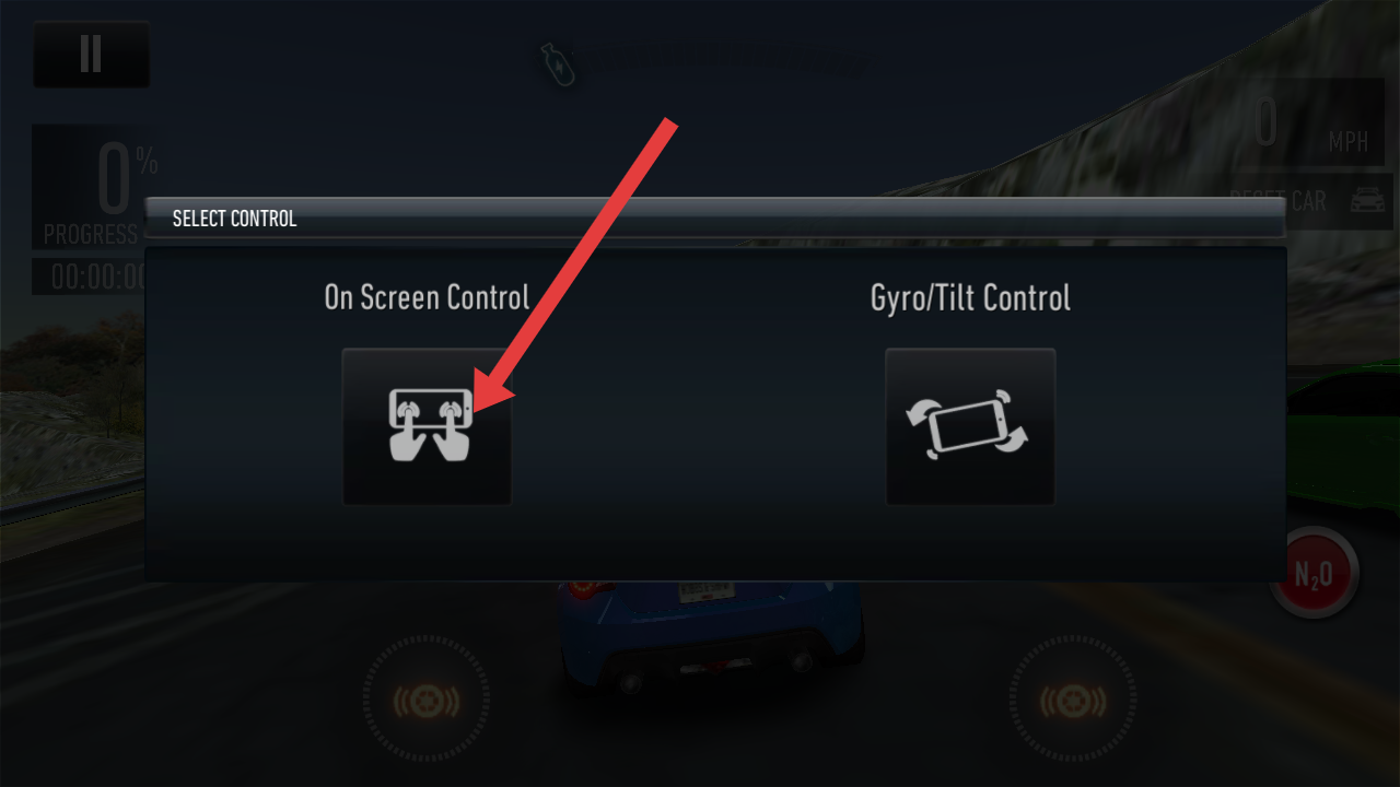 1、选择On Screen Control屏幕按键操控模式,通关虚拟按键实现转向、加速等操作,该模式对新手友好。