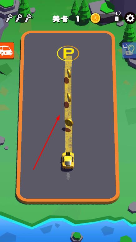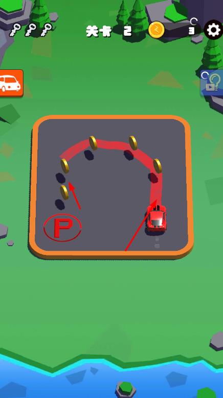 1、车辆操控与基础停车:通过虚拟方向盘控制转向方向,点击油门键加速、刹车键减速,根据箭头指示找到目标车位,将车辆完全停入车位线内即可完成基础挑战。