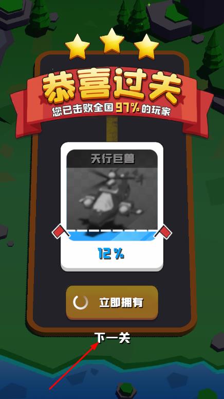 3、当车辆成功到达终点后,显示过关提示,点击下一关按钮,进入下一个关卡。