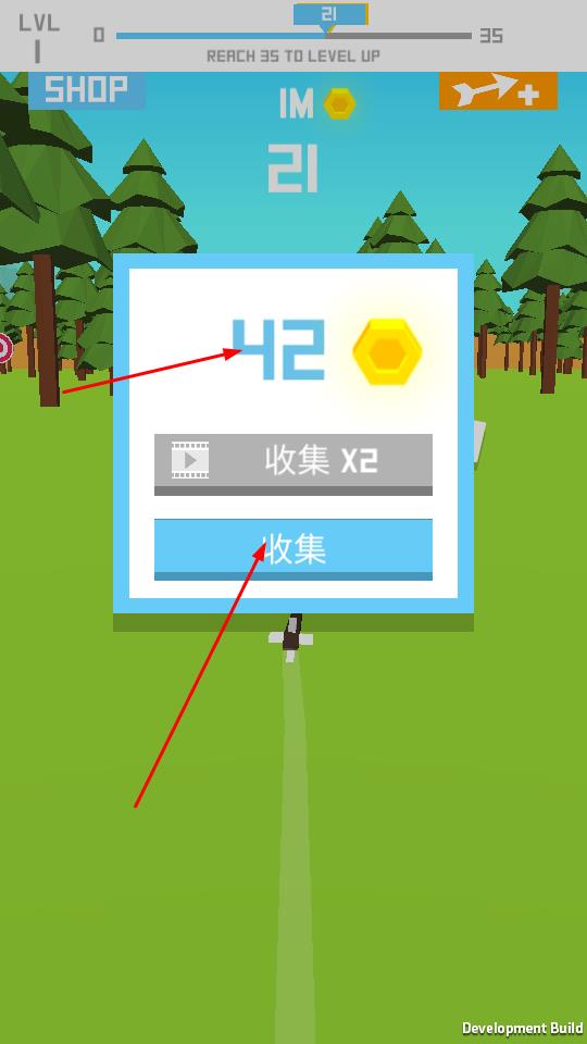3、命中后弹出结算界面,获取金币如42,点击收集领取,可观看广告翻倍收益,积累金币用于升级装备或解锁功能。