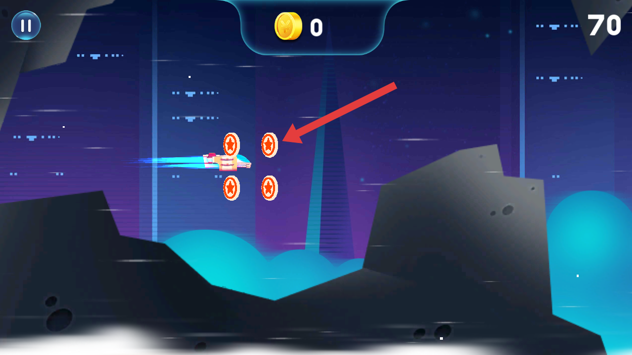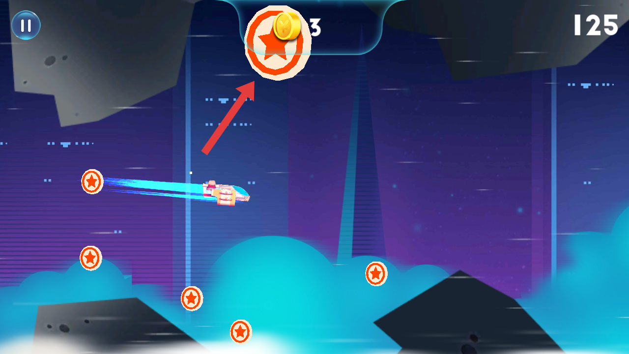 2、需要优先收集带有金币标识的红色星形道具,如果碰到比其他的红色星形还要大的需要快速获取。