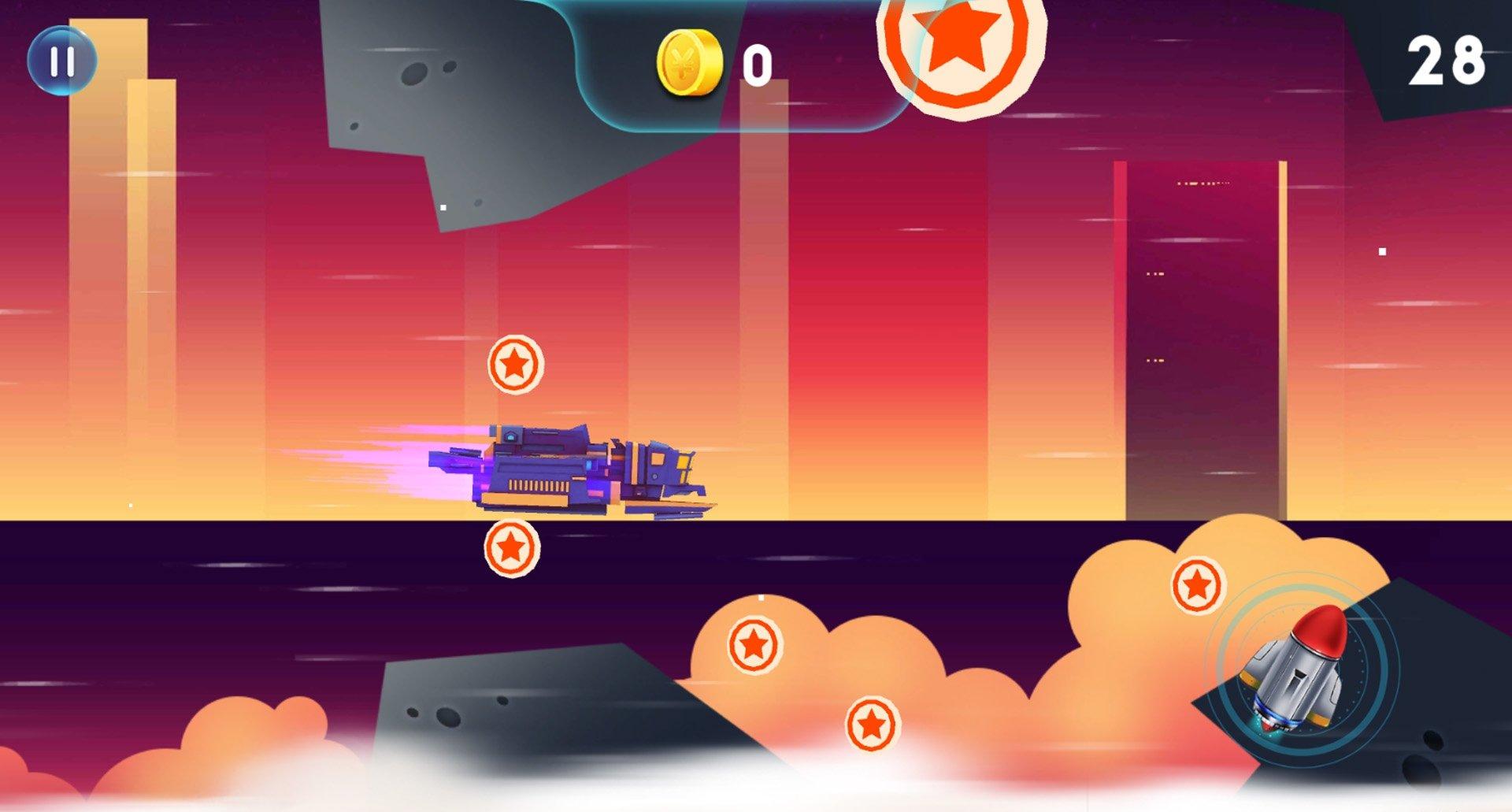 3、玩法易懂普适:玩法类经典酷跑,核心是操控飞行器穿梭躲避,规则简单明了,无需复杂理解即可快速投入,易懂设计让闲暇时刻能随时开启飞行,享受轻松乐趣。