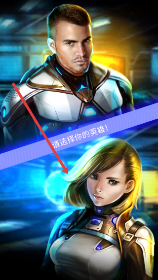 2、在请选择你的英雄界面,通过点击选定女性英雄角色,确认后即可进入太空射击的战斗环节。