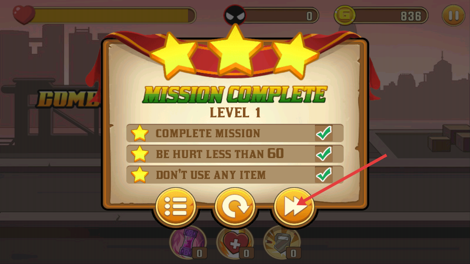 4、三星完成【LEVEL-1】任务后,点击箭头按钮进入下一关,积累奖励解锁更多关卡内容。
