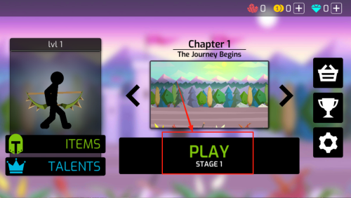 2、进入章节选择页面后,点击“PLAY”按钮即可开始第1章 STAGE1 的冒险。