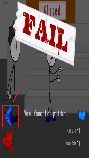 4、重新开始:如果失败,点击“RETRY AGAIN”按钮重新开始游戏。