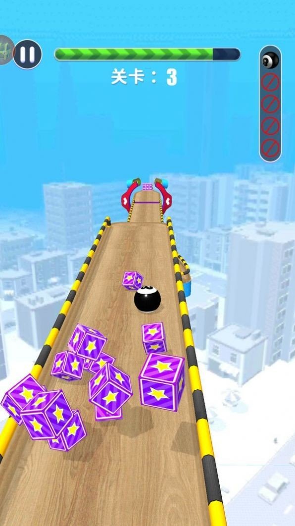 跑酷进行时是一款休闲跑酷游戏,玩家通过手指滑动操控黑球在木质跑道上前进,在城市背景的关卡中,收集金币、钥匙与道具,躲避两侧障碍,利用加速带、弹簧等机关突破挑战,从关卡2起步,每关通关后获取金币,用于抽奖或商城购物,在滑动收集闯关的循环里,体验跑酷的流畅操作与资源积累的乐趣。