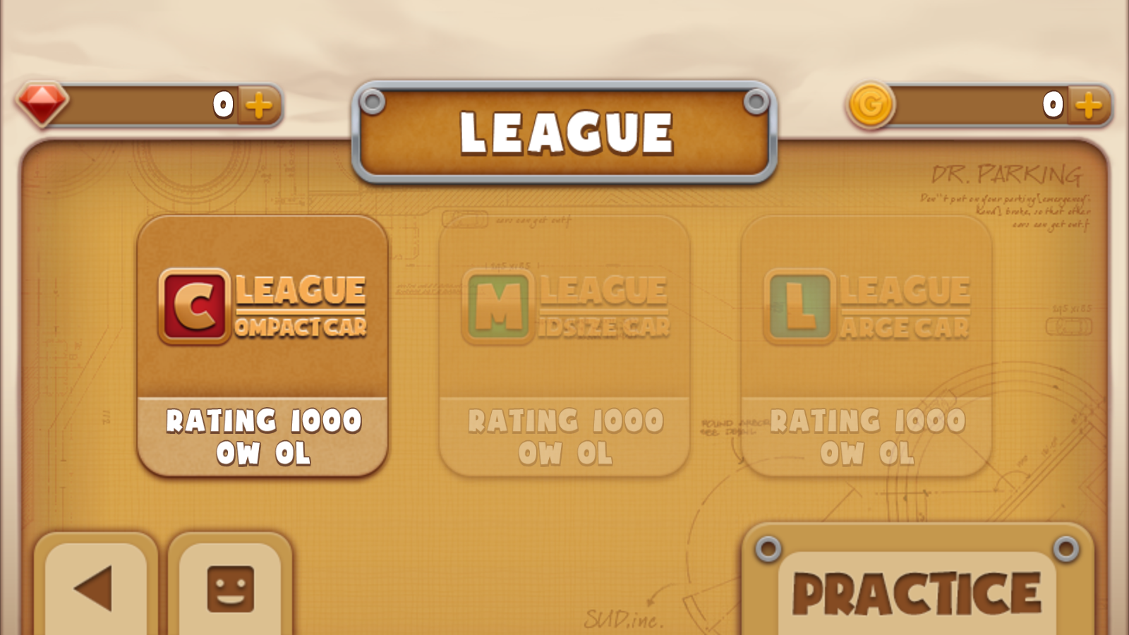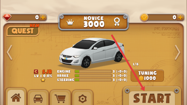 1、在车辆界面点击棕色START按钮,进入停车关卡的选择界面,准备开启停车挑战之旅。