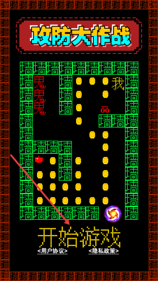 1、点击开始游戏,进入攻防大作战关卡,按目标帮助猛鬼进入黑洞,规划移动路径。