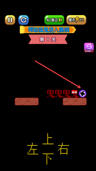 2、通过上下左右滑动,操控猛鬼移动,避开障碍,收集道具,引导其抵达黑洞,注意限时挑战。