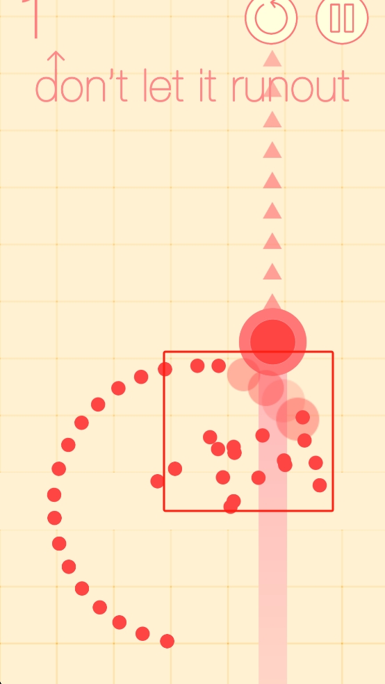 2、发射后小球会沿着虚线移动,需保证轨迹持续,通过点击控制发射节奏,补充小球维持轨迹。