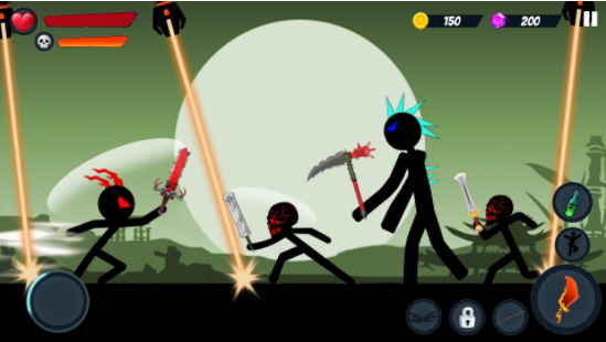 3、控制自己的火柴人开始精彩的战斗,体验全新的战斗方式,使用多种技能完成战斗。