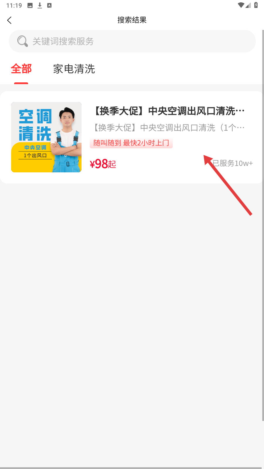 3、在列表选心仪服务(如空调清洗),进入详情页了解内容。