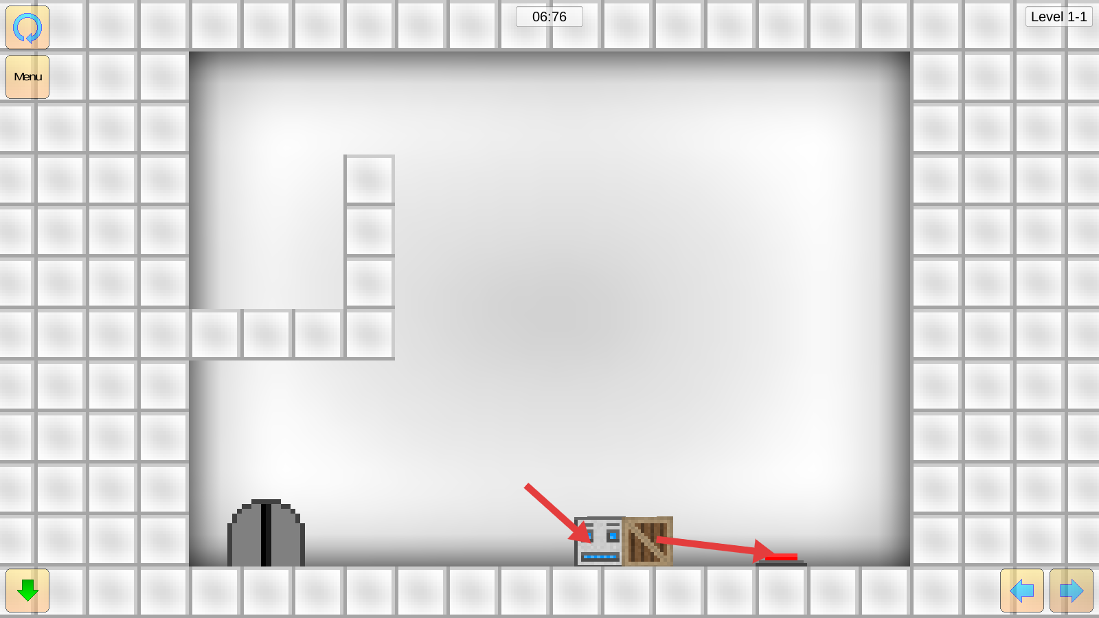 3、推动木箱至红色按钮处触发机关,过程中关注时间变化,确保操作效率以达成完美时间目标。
