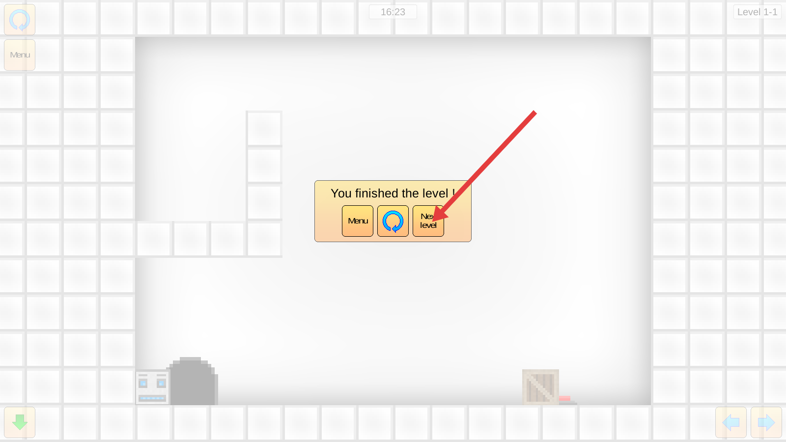 4、通关后界面显示【You-finished-the-level!】,点击【Next-level】按钮即可进入下一关继续挑战。