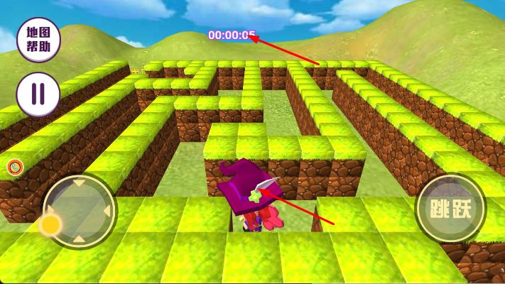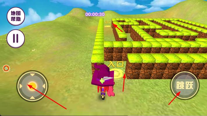 2、在场景中,通过左侧的虚拟摇杆控制角色移动方向,点击屏幕右侧的跳跃按钮控制角色跳跃,在迷宫中探索前进。
