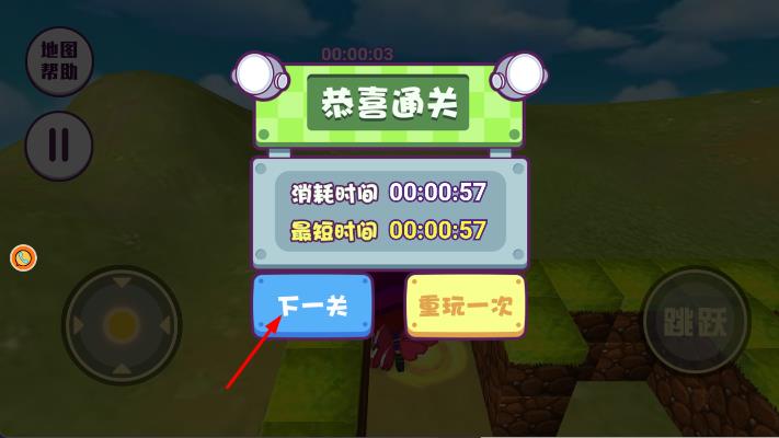 3、在迷宫中寻找出口,注意避开障碍物,合理规划移动路线,成功到达出口后,显示通关,点击下一关按钮,进入下一个关卡。