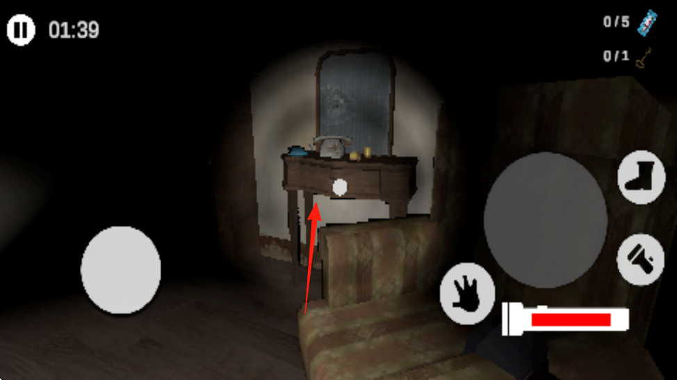 2、在过程中拾取到手电筒,可以利用手电筒照明,探索房间,移动家具如桌子,寻找隐藏道具钥匙、补给。