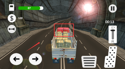 4、操控重型卡车完成运输任务,注意载重对车辆操控的影响。