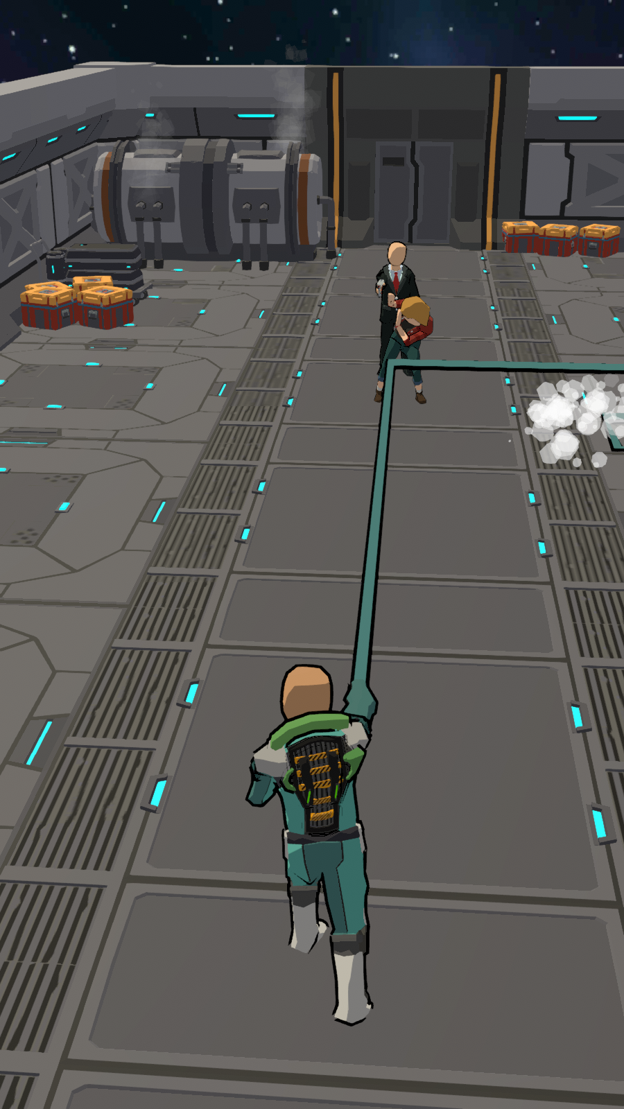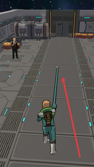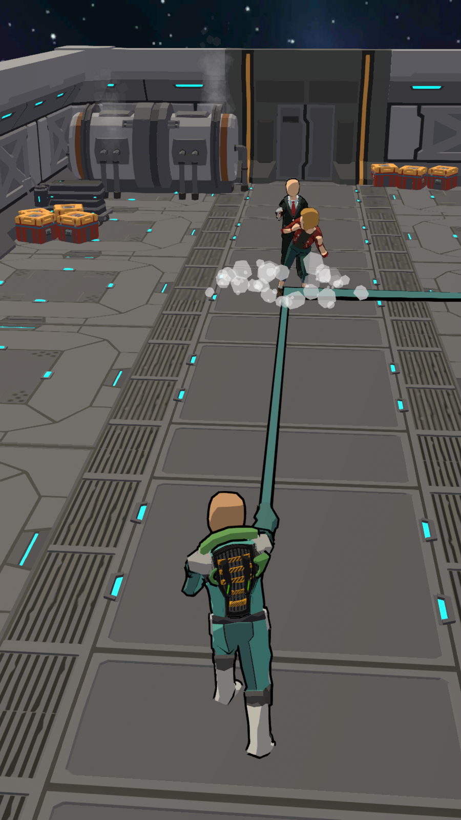1、游戏里操控角色时,点击屏幕让角色挥动长棍出拳,借助武器攻击前方区域,推进太空舱内的冒险进程,留意场景中目标与障碍。