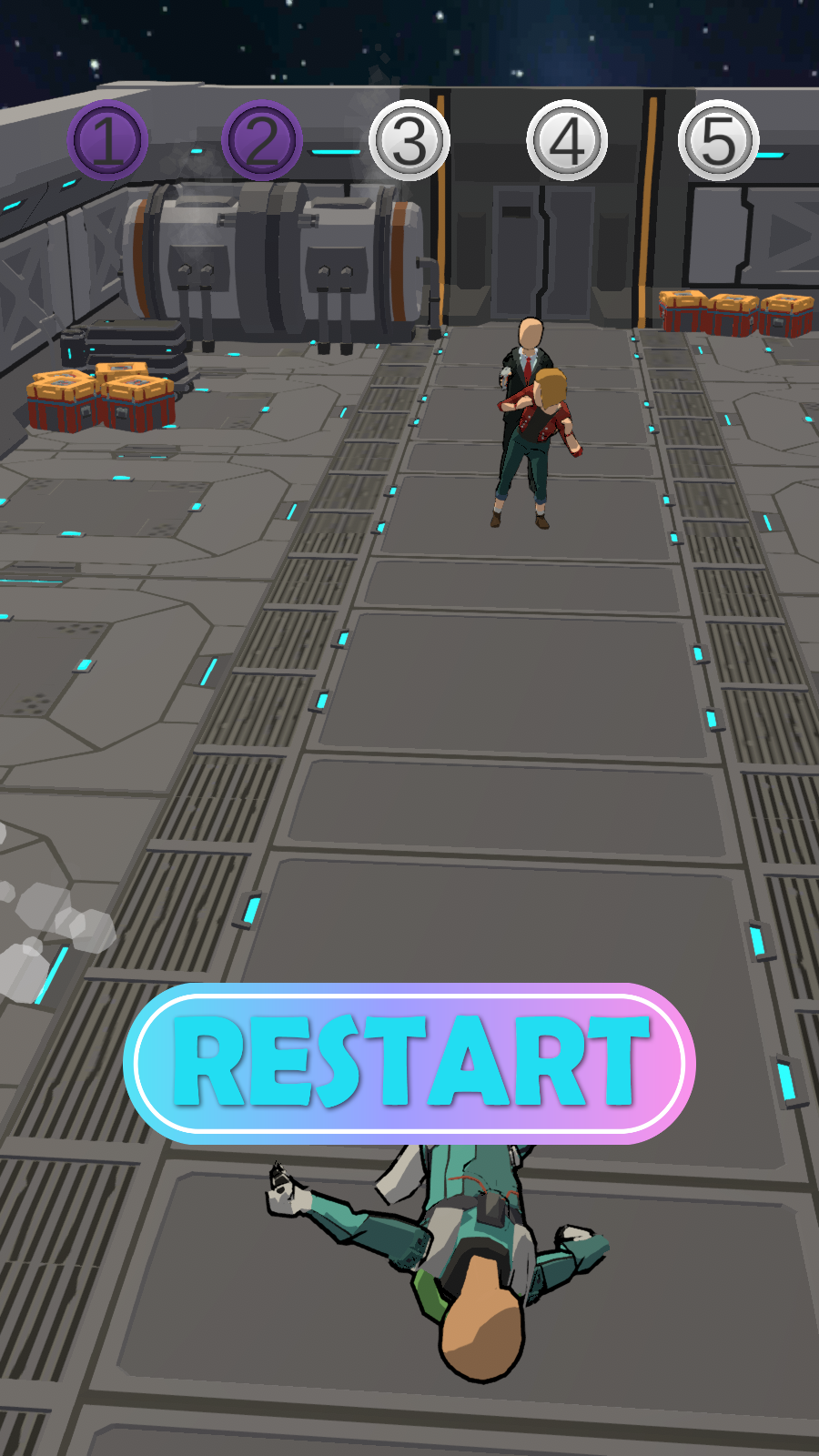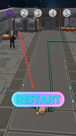 2、若角色挑战失败倒地,界面弹出RESTART按钮,点击该按钮就能重新开始当前关卡,尝试调整策略完成挑战。