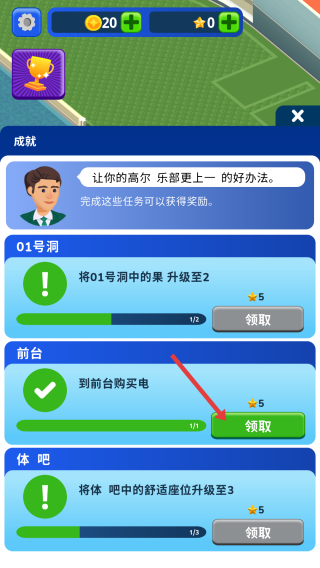 3、在成就界面,当完成相应的任务,如到前台购买电后,点击领取按钮,即可获得对应的奖励,这些奖励可以帮助你更好地进行游戏。