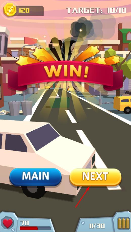 2、遭遇恐怖分子时,点击射击按钮进行攻击,通过消灭敌人收集金币,这些金币可在商店用来升级手中武器,增强火力。