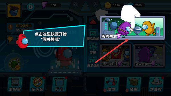 1、游戏开始时,点击界面上标有闯关模式的区域,开启你的冒险之旅。